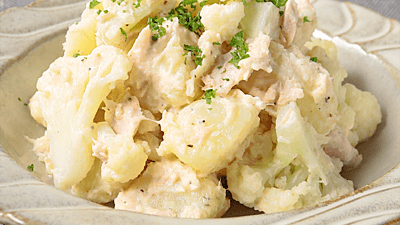 カリフラワーサラダのレシピおすすめの16選を紹介最終更新日 2024.2.20さっくりとした食感がやみつきになる!カリフラワーサラダのレシピをご紹介します。クセのないカリフラワーをフレンチドレッシングや中華風、カレー風味など、さまざまな味わいが楽しめるレシピを集めました。ぜひ参考にしてみてくださいね。目次カリフラワーとじゃがいものサラダカリフラワーとゆで卵のカレーサラダブロッコリーとカリフラワーのツナサラダカリフラワーとうずらの卵のカレーピクルスカリフラワーとにんじんのみそマヨ和えカリフラワー入りマッシュポテトカリフラワーの塩昆布和えカリフラワーと卵のゴロゴロサラダ全て表示(16種類)カリフラワ ーとじゃがいものサラダクラシル公式4.41(121)20分400円カリフラワー、じゃがいも、ツナ、マヨネーズ、酢、塩、黒こしょう、パセリカリフラワーとゆで卵のカレーサラダクラシル公式4.48(87)20分400円カリフラワー、熱湯、塩、マヨネーズ、酢、砂糖、カレー粉、塩こしょう、パセリ、卵、冷水、お湯、水ブロッコリーとカリフラワーのツナサラダクラシル公式4.37(148)20分300円ブロッコリー、カリフラワー、ツナ、マヨネーズ、砂糖、黒こしょうカリフラワーとうずらの卵のカレーピクルスクラシル公式4.28(13)15分300円カリフラワー、うずら卵の水煮、水、酢、砂糖、カレー粉、塩、お湯カリフラワーとにんじんのみそマヨ和えクラシル公式4.55(12)15分200円カリフラワー、にんじん、ミックスビーンズ、マヨネーズ、みそ、しょうゆ、小ねぎカリフラワー入りマッシュポテトクラシル公式20分400円じゃがいも、カリフラワー、ニンニク、牛乳、サワークリーム、塩、黒こしょう、小ねぎ、水、有塩バターカリフラワーの塩昆布和えクラシル公式4.05(14)5分300円カリフラワー、塩昆布、ごま油、大葉カリフラワーと卵のゴロゴロサラダクラシル公式4.24(8)20分300円カリフラワー、ゆで卵、くるみ、マヨネーズ、無糖ヨーグルト、レモン汁、塩こしょう、パプリカパウダー、水、サニーレタスカリフラワーのピクルスクラシル公式4.53(38)150分400円カリフラワー、お湯、酢、水溶き薄力粉、水、砂糖、塩、ローリエ、鷹の爪輪切り、ホール黒こしょうフレンチドレッシングでカリフラワーとパプリカのサラダクラシル公式20分300円カリフラワー、赤パプリカ、サニーレタス、りんご酢、マスタード、塩、砂糖、サラダ油、水カリフラワーと枝豆のさっぱりレモンサラダクラシル公式4.35(7)20分400円カリフラワー、お湯、塩、枝豆、カニカマ、レモン汁、EVオリーブオイル、はちみつ、黒こしょう、パセリスティックカリフラワーのアンチョビ温サラダクラシル公式10分300円お湯、塩、オリーブオイル、アンチョビフィレ、すりおろしニンニク、レモン、スティックカリフラワーカリフラワーとカブの中華風サラダクラシル公式15分300円カリフラワー、カブ、ごま油、しょうゆ、砂糖、酢、豆板醤、白すりごま、塩パン粉でさくさく カリフラワーとくるみのホットサラダクラシル公式30分300円カリフラワー、オリーブオイル、くるみ、レモン汁、パン粉、粉チーズ、塩、パセリ、薄切りハーフベーコンカリフラワーとケールのクリスピーマヨグリルクラシル公式4.76(5)15分600円ケール、カリフラワー、マヨネーズ、クミンシード、塩、こしょう、パセリ、パン粉、薄切りロングベーコンカリフラワーライスでサーモンアボカド丼クラシル公式20分500円カリフラワー、アボカド、サーモン、きゅうり、無糖ヨーグルト、マヨネーズ、黒こしょう、ピンクペッパー、わさび、しょうゆ