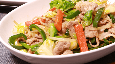 野菜炒め簡単のレシピおすすめの30選を紹介最終更新日 2023.3.6忙しいときでもパパっと簡単に作れる「野菜炒め」はいかがですか。いろいろな野菜を入れて、和風や中華風など、さまざまな味のバリエーションを楽しむことができますよ。ぜひチェックしてみてくださいね。目次簡単おいしい!肉野菜炒め簡単 ニラ玉チャーハンごま味噌肉野菜炒め10分で出来る!アスパラきのこ炒めかつお節香る 小松菜と揚げのおかか炒め豚肉とキャベツで 簡単回鍋肉子供が大好きな簡単お手軽 ウインナーの野菜炒めご飯のお供に!豚バラ大根の照り焼き炒め全て表示(20種類)簡単おいしい!肉野菜炒めクラシル公式4.46(2,085)20分300円キャベツ、にんじん、ピーマン、もやし、鶏ガラスープの素、しょうゆ、塩こしょう、オイスターソース、薄力粉、サラダ油、豚こま切れ肉、料理酒簡単 ニラ玉チャーハンクラシル公式4.43(483)20分300円ニラ、溶き卵、ごはん、ごま油、塩こしょう、すりおろしニンニク、酒、しょうゆ、オイスターソース、マヨネーズごま味噌肉野菜炒めクラシル公式4.45(622)30分300円豚こま切れ肉、キャベツ、しめじ、玉ねぎ、にんじん、みそ、白すりごま、料理酒、みりん、鶏ガラスープの素、ごま油10分で出来る!アスパラきのこ炒めクラシル公式4.41(541)10分300円アスパラガス、しめじ、サラダ油、エリンギ、めんつゆ(2倍濃縮)、黒こしょう、すりおろしニンニク、有塩バター、鷹の爪輪切り、薄切りロングベーコンかつお節香る 小松菜と揚げのおかか炒めクラシル公式4.40(539)15分100円小松菜、油揚げ、長ねぎ、かつお節粉、かつお節、サラダ油、酒、醤油、みりん、白ごま豚肉とキャベツで 簡単回鍋肉クラシル公式4.47(397)25分300円豚こま切れ肉、キャベツ、みそ、しょうゆ、豆板醤、すりおろし生姜、すりおろしニンニク、サラダ油、砂糖、料理酒子供が大好きな簡単お手軽 ウインナーの野菜炒めクラシル公式4.43(303)15分300円もやし、キャベツ、にんじん、ピーマン、鶏ガラスープの素、オイスターソース、砂糖、コーン、ごま油、ウインナーご飯のお供に!豚バラ大根の照り焼き炒めクラシル公式4.50(1,394)20分600円大根、豚バラ肉、みりん、砂糖、しょうゆ、サラダ油、顆粒和風だし、料理酒、小ねぎ簡単&美味しい!タコとエリンギのコンソメバター炒めクラシル公式4.41(166)20分300円タコ、エリンギ、ブロッコリー、ニンニク、オリーブオイル、コンソメ、しょうゆ、有塩バター、パプリカパウダー豚肉ときくらげの卵炒めクラシル公式4.48(548)20分400円豚バラ肉、きくらげ、水、溶き卵、ごま油、チンゲン菜、ニンニク、生姜、しょうゆ、オイスターソース、片栗粉、鶏ガラスープの素、料理酒パパッと簡単 肉野菜炒めクラシル公式4.37(145)20分400円豚バラ肉、キャベツ、ピーマン、にんじん、玉ねぎ、ごま油、しょうゆ、塩こしょう、鶏ガラスープの素めんつゆで簡単 ピーマンと桜エビ炒めクラシル公式4.32(95)10分200円ピーマン、料理酒、めんつゆ、桜エビ、ごま油パパッと簡単!鮭チャーハンクラシル公式4.48(101)15分200円鮭フレーク、ごはん、ミックスベジタブル、玉ねぎ、塩こしょう、サラダ油、ごま油、きざみのり、溶き卵、顆粒和風だし、しょうゆ、すりおろしニンニク、小ねぎ簡単!青菜の中華炒めクラシル公式4.47(121)15分400円ニンニク、鷹の爪、サラダ油、塩、紹興酒、お湯、鶏ガラスープの素、砂糖、片栗粉、ごま油、チンゲン菜、糸唐辛子野菜たっぷり ちゃんぽん風炒めクラシル公式4.61(144)20分400円豚バラ肉、シーフードミックス、かまぼこ、キャベツ、もやし、にんじん、コーン、料理酒、鶏ガラスープの素、塩こしょう、ごま油、牛乳ナスだけで簡単!揚げずにナス南蛮クラシル公式4.47(43)20分400円ナス、しょうゆ、砂糖、酢、薄力粉、糸唐辛子、万能ねぎ、ごま油彩り野菜と春雨の甘辛炒めクラシル公式4.47(89)30分500円タケノコ水煮、黄パプリカ、にんじん、青ねぎ、春雨、しょうゆ、酒、一味唐辛子、砂糖、コチュジャン、ごま油、白ごま、牛こま切れ肉しょうがでさっぱり!肉野菜味噌炒めクラシル公式4.44(135)15分200円サラダ油、みそ、ごま油、みりん、すりおろし生姜、豚こま切れ肉、もやし、にんじん、ニラ牛肉とピーマンのスタミナねぎ塩炒めクラシル公式4.48(174)20分500円牛こま切れ肉、ピーマン、長ねぎ、鶏ガラスープの素、塩こしょう、すりおろしニンニク、ごま油、白いりごまピーマンと油揚げのオイスター炒めクラシル公式4.34(64)10分400円油揚げ、ピーマン、オイスターソース、料理酒、ごま油、白いりごま、しょうゆ、みりん