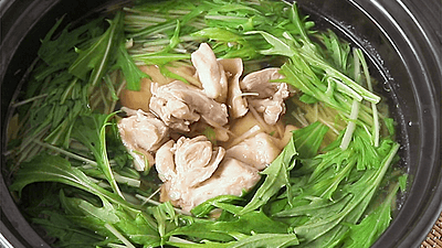 鶏肉で作る たっぷり水菜のエスニックはりはり鍋