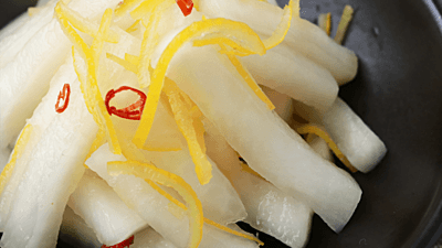 大根漬物のレシピおすすめの25選を紹介最終更新日 2024.7.29シャキシャキとした食感も楽しい、大根の漬物レシピをご紹介します。ゆずの香りが広がるゆず大根やさっぱりおいしいポン酢漬け、スパイスを効かせたインド風ピクルスなど、幅広くピックアップ!大根の消費にもおすすめです。即席で作る大根キムチの「カクテキ」はお酒のおつまみにもぴったり!目次ゆず香る 大根の甘酢漬け昆布茶で簡単 大根のお漬け物紅芯大根の甘酢漬け大根と白菜のはちみつレモン風味漬け大根のかつおじょうゆ漬けさっぱりシャキシャキ ゆず大根大根の昆布酢漬け大根のポン酢漬け全て表示(20種類)ゆず香る 大根の甘酢漬けクラシル公式4.51(41)200分200円大根、酢、砂糖、塩、ゆずの皮昆布茶で簡単 大根のお漬け物クラシル公式4.46(63)70分100円塩、砂糖、酢、昆布茶、鷹の爪輪切り、大根紅芯大根の甘酢漬けクラシル公式4.56(55)370分200円酢、砂糖、白だし、紅芯大根、塩大根と白菜のはちみつレモン風味漬けクラシル公式4.29(71)50分200円大根、白菜、塩、レモン汁、はちみつ大根のかつおじょうゆ漬けクラシル公式4.49(117)5分200円大根、しょうゆ、酢、砂糖、かつお節、塩昆布さっぱりシャキシャキ ゆず大根クラシル公式4.56(1,003)80分200円大根、ゆず、塩、砂糖、酢、鷹の爪輪切り大根の昆布酢漬けクラシル公式4.30(45)10分200円大根、昆布、鷹の爪輪切り、穀物酢、砂糖、塩大根のポン酢漬けクラシル公式4.41(124)30分100円大根、めんつゆ、ポン酢、鷹の爪輪切り、ごま油赤大根の甘酢漬けクラシル公式4.34(12)70分300円大根、昆布、寿司酢、ゆずの皮簡単!大根の漬物クラシル公式4.22(42)10分100円大根、水、はちみつ、塩、鷹の爪、酢、粗挽き黒こしょう切り干し大根で作る 昆布入りはりはり漬けクラシル公式4.42(24)190分200円切り干し大根、昆布、ひじき、水、酢、しょうゆ、砂糖、みりん、酒、鷹の爪輪切り、お湯お手軽 たくあん漬けクラシル公式80分100円大根、塩、白だし、酢、ターメリックパウダー、白いりごま、砂糖カレーのおともに 大根のインド風ピクルスクラシル公式4.66(5)20分200円大根、赤唐辛子、クミンシード、一味唐辛子、塩、赤パプリカ、オリーブオイル、レモン汁、お湯、コリアンダー、紫玉ねぎ美味しい根菜ときゅうりのピリ辛漬けクラシル公式4.31(7)70分150円大根、にんじん、純米酢、鷹の爪、粗挽き黒こしょう、きゅうり、3倍濃縮めんつゆ大根と白菜の塩昆布漬けクラシル公式4.24(72)40分300円大根、白菜、塩昆布、ごま油、塩大根の葉の漬け物クラシル公式4.18(85)40分100円大根葉、塩、白いりごま、かつお節、しょうゆ簡単 大根とゆずのべったら漬け風クラシル公式4.16(9)70分100円大根、ゆず果汁、ゆずの皮、塩麹、寿司酢大根と刻み昆布の甘酢漬けクラシル公式4.26(11)140分300円大根、塩、昆布、酢、みりん、砂糖きゅうりと大根のあちゃら漬けクラシル公式4.29(29)90分300円きゅうり、大根、塩、酢、しょうゆ、砂糖、ごま油、鷹の爪輪切り大根と千切り生姜の浅漬けクラシル公式4.47(7)70分200円大根、生姜、塩麹、砂糖、顆粒和風だし、レモン汁