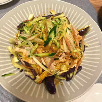 今回のレシピは蒸しなすと豚肉の冷しゃぶです☻