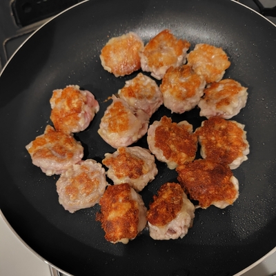 ③手で丸め、サラダ油をひいたフライパンで焼く。