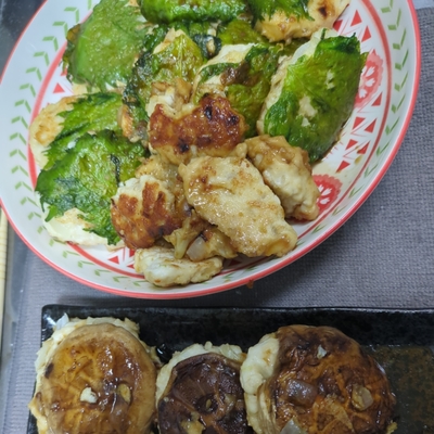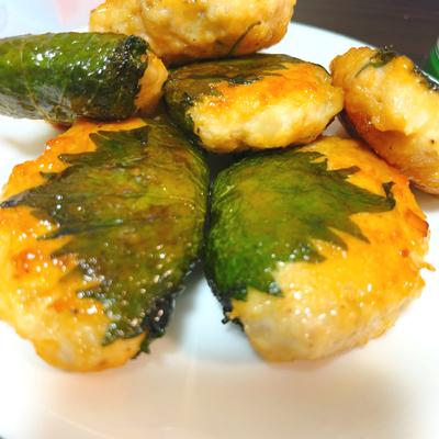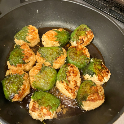 全ての材料は2倍で、タレは3倍にしました。20個できたので、フライパン2個で焼きました。ふわふわで大葉が効いててタレも美味しくて大満足です。