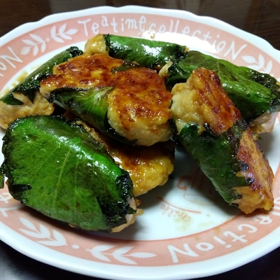 肉だねを大葉で包む。