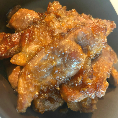 鍋にたれの材料を暖め砂糖がとけたら豚のハツにからめる。