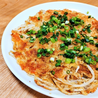 もやしにピザ用チーズと片栗粉、鶏ガラスープの素をまぜて、フライパンで焼くだけの簡単・時短レシピ!😙