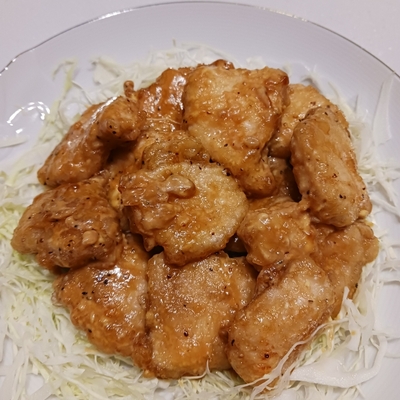 カリッと揚げ焼きにした鶏むねにタレマヨをさっと絡める。以上!