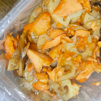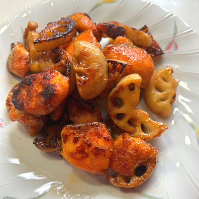 蓮根の歯応えと鮭の旨味がビールの量を増やします。 旨ーい!