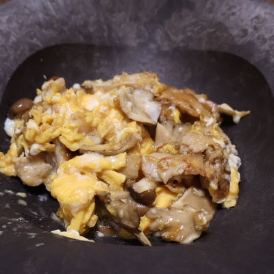 しょうがはみじん切りにする。舞茸は食べやすい大きさにほぐす。卵はよく溶いておく。