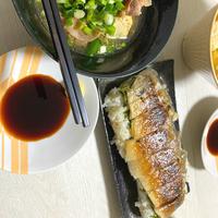 焼き目が香ばしい、しめ鯖の簡単押し寿司です。 ごはんに混ぜ込んだ新生姜が食感のアクセントになり、大葉と合わさって全体を爽やかに仕上げてくれています。 新生姜が苦手な方は大葉だけでも、美味しくお召し上がりいただけます。