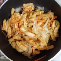 食べざかりの息子がいるので、ボリュームを出す為に玉ねぎや人参もいれて味付けしました。