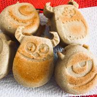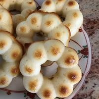 写真右下のように膨れて割れ目は出来ましたが(裏側のみです。ひっくり返せば写真左下)100均の熊のシリコン型2つで12個作れる量でした。簡単に作れて甘さ控えめなのでホイップと共に美味しく頂きました。