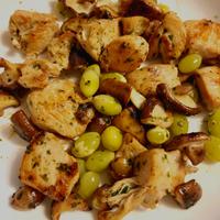 銀杏をたくさんいただいたので作ってみました。あっさりとした炒め物ですが、青のりの香りと銀杏のほろ苦い風味が良いですね。椎茸の代わりに舞茸、ブライン液に浸したむね肉使用。