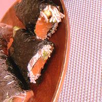 サーモンは小さめにした方が🙆🏻👌✨中身はサーモンandアボガドスライスです。