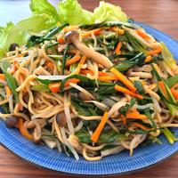 ニラ、しめじ、もやし、長ネギ、人参で作りました。