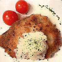 ブリは骨の部分は削いで取り除き、半分に切って衣をつけて揚げました☺️