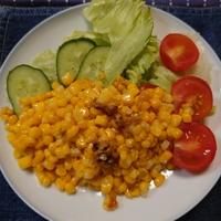 トウモロコシブームです!初めて食べるレシピでしたー。辛味は少なめにしました。