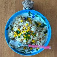 しらすとコーンのガーリックバターチャーハン初めて作りました。