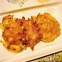 - 4 フライパンにごま油をひいて中火で加熱し、すくい入れ、直径6cm程に形を整えて焼きます。4分程焼き、縁が固まってきたら裏返し、さらに3分程加熱します。
