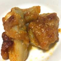 お肉は調味料に漬けず、片栗粉を振って焼き、その後レンコンも入れて一緒に焼き、漬けおきの調味料を入れて煮詰める→仕上げにマヨネーズを少量回し入れて混ぜ合わせて完成!