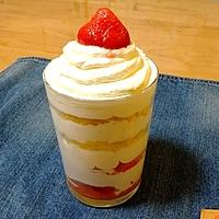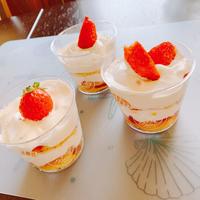 よりショートケーキ感を出したかったのでスポンジは自分で焼いたものを使いました。特大カップに盛り付けたけど一度で食べきれず····次は適量に盛り付けます。おいしかったです。