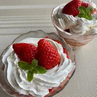 手順1のいちごは4等分にしていますが、切らずに加熱後に潰して使用しても良いです。 また、代わりにいちごジャムでもお作りいただけます。 生クリームは泡立てすぎてしまうと、ボソボソになってしまいますので気を付けて下さい。 ご使用の電子レンジの機種や耐熱容器の種類、食材の状態により加熱具合に誤差が生じます。様子を確認しながら、必要に応じて加熱時間を調整しながら加熱してください。