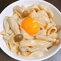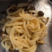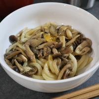 うどんシリーズ第4段。とても美味しかったです!まず、バターと醤油で美味しいに決まっているのに、そこに卵黄だなんて。美味しくないわけがない。きのこはしめじのみで。簡単に作れました。