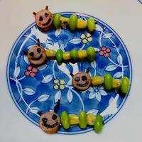 - 5 4のソーセージの部分に、黒いりごま、2、ケチャップで顔を作ります。器に盛り付けて完成です。