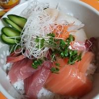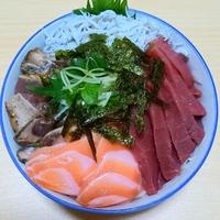 しらす丼にしよう…と 思いつつ、お刺身盛り合わせがあったので、海鮮丼に変更 。
