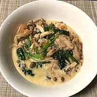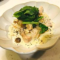 鶏肉の下味がしっかり付いていたのでコンソメは少なめでいいかも。ほうれん草をスナップえんどうに、生クリームは牛乳で代用しました。とろみがなくさらりとしていますがお肉が柔らかくおいしかったです。次は生クリームを用意して作りたい😃🍴💕