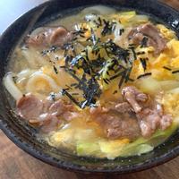 豚肉と半熟の卵をのせた、ボリューム満点のうどんです。しっかり食べたい日のお昼ごはんにもおすすめですよ。うどん料理のバリエーションのひとつに、ぜひ加えてみてくださいね。