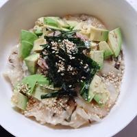 ごま油と白いりごまをたっぷり入れたとろろが主役の丼です。 味付けはめんつゆでとっても簡単! アボカドととろろの組み合わせは、とろとろクリーミーながらも味はあっさり。 もりもり食べたくなっちゃう一品です。