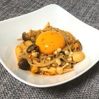 いろんな種類のきのこを韓国料理、ユッケ風の味付けでいただくおつまみレシピのご紹介です。コチュジャンのピリ辛の味付けがしっかりときのこに絡んでとてもおいしいですよ。とろっと卵黄を絡ませてお召し上がりください。