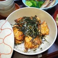 作りながら白だしが有ったなと…で、塩&鶏ガラスープの替わりに日本酒&白だしを使いました💦 朝漬け込んで夕方仕上げたので中までシッカリ生姜と白だしが染み込み、衣は薄くカリカリ❗️鶏肉はバサつかず美味しく揚がったので、鶏胸肉の唐揚げ丼にして頂きました💕