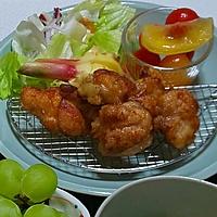 ムネでと思ってたのに、もも肉がお得だったのでつい。片栗粉だけのは初めてかも、理想的なカリカリ食感で中はジューシーで美味しかったです!下味に塩胡椒軽くしたけど若干薄く感じたのでお好みで各種塩つけました。