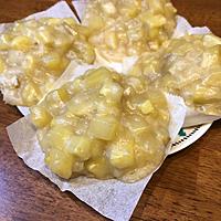 - 3 薄力粉を加え、ダマがなくなるまで混ぜ合わせ、スプーンなどでクッキングシートの上に乗せます。