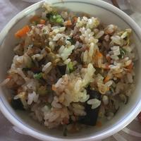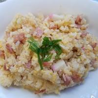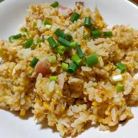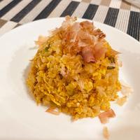 チャーハンの素を切らしてたので。冷蔵庫掃除のため色々入れました。鰹節の風味が和風で美味しいです。