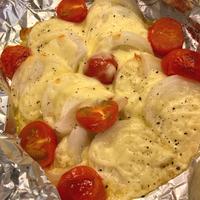 ミニトマトも一緒に、魚焼きグリルで。火加減は弱〜中の間10分位でちょうど良かったです。ベーコンを挟んでも美味しそう。