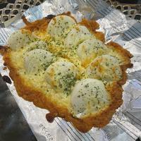 - 2 アルミホイルを敷いた天板にのせ、塩、黒こしょうをふり、オリーブオイル、ピザ用チーズの順にかけます。