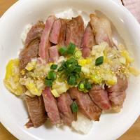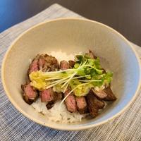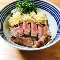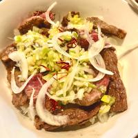 ガッツリ食べる ステーキ肉でネギ塩牛丼 レシピ・作り方