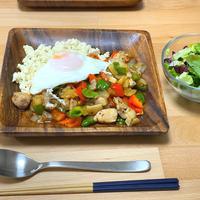 糖質8g(低カロリー甘味料に含まれる糖質を除きます)/602Kcal(1人分) ご飯をお豆腐で代用し、バジルの香りが爽やかなガパオ風にしました。ご飯1杯(約150g)は55g程の糖質がありますので糖質を大きく抑えられます。また、甘辛い味付けは糖質が多くなりがちですが調味料の量を調整し、糖質が多めの野菜も少しずつ使用することで糖質を抑えています。※この糖質量・カロリーは調理法等を考慮した栄養計算を行っているため、通常のカロリー欄に記載されているクラシル独自計算結果と若干の差がある場合がございます。ご了承ください。