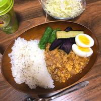 調味料参考、鶏ミンチ玉葱エリンギしめじピーマンでアレンジ、ジャワカレー使用。簡単で美味しい。次はレシピ通り蓮根で作ってみよ✏️