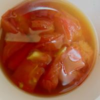 トマトの代わりにミニトマトを使って。少しトマトの酸味は感じるけどアッサリした味で美味しかったです。