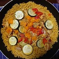 タンドリーチキンの旨みとスパイスが効いた香り高いパエリアです。弱火で12分、蓋をしたまま10分蒸らすとおこげが丁度良く仕上がります。玉ねぎ、人参、ズッキーニなどの野菜を加えると彩り豊かに。タンドリーチキンを焼いた後のフライパンで生米を炒めると、ふっくらとした食感と深い味わいが楽しめます。最後にレモンを絞るとさっぱりと爽やかな風味が広がり、家族みんなに大好評の一品に。