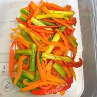 - 1 パプリカ、アスパラを食べやすい大きさ に切ります。