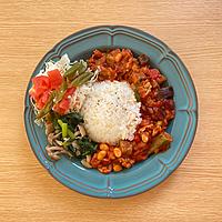 ズッキーニとひよこ豆の食感が非常に良く、ごはんが進みました。料理初心者にもおすすめです。いつものカレーに飽きたらこれ!