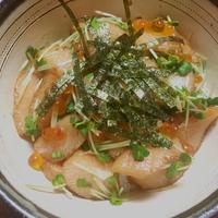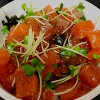 カイワレがいいアクセントで大変美味しかったです。タレも作りやすくて簡単でした。またいくらとサーモンがあるタイミングで作りたいと思います。