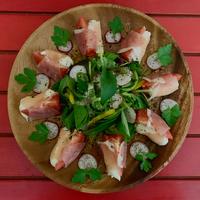 生ハムカプレーゼが美味しかったのは勿論、サラダの葉物を旬の物に変えたりしてアレンジが効くので、とっても重宝しているレシピです。