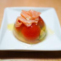 アボカドとスモークサーモンが強く出てしまったので次はゼリー液を少し濃い目の味付けにしようと思います。