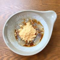 - 4 水気を切って器に盛り付け、きな粉、黒蜜をかけて完成です。
